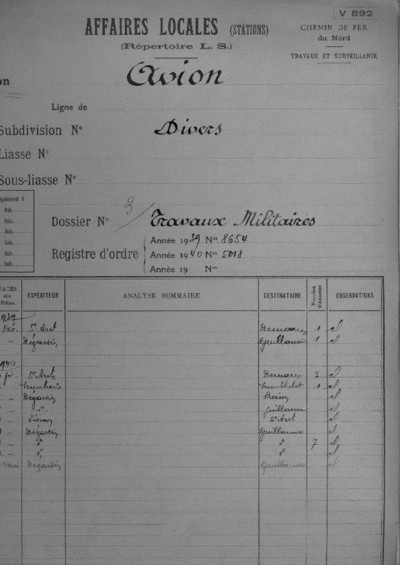 Les travaux militaires à la gare de Avion